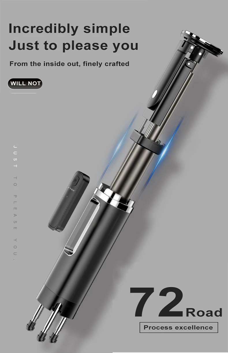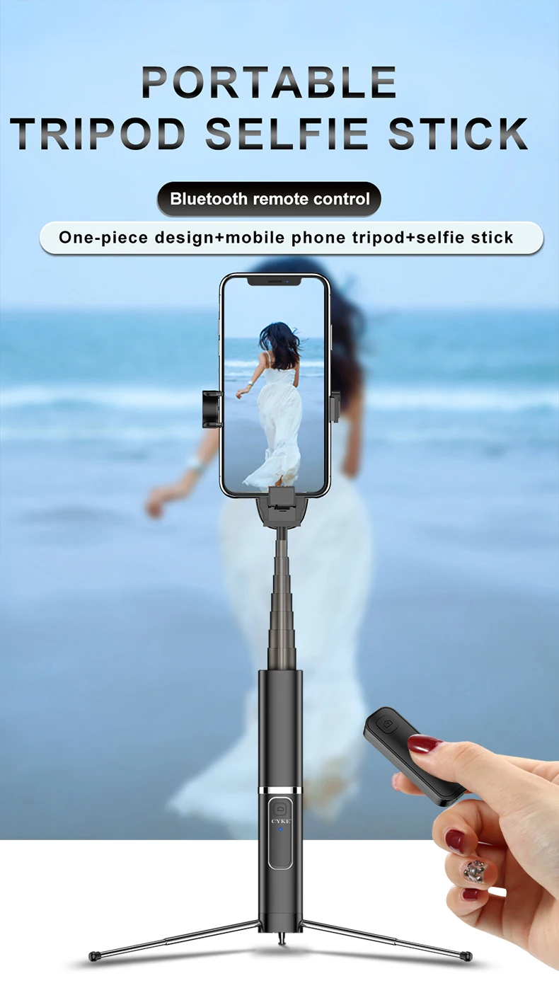 CYKE Mini Handheld Wireless Bluetooth Selfie Stick 3 in 1 Remote Control Shutter Selfie Stick Independent Tripod Telescopic Rod